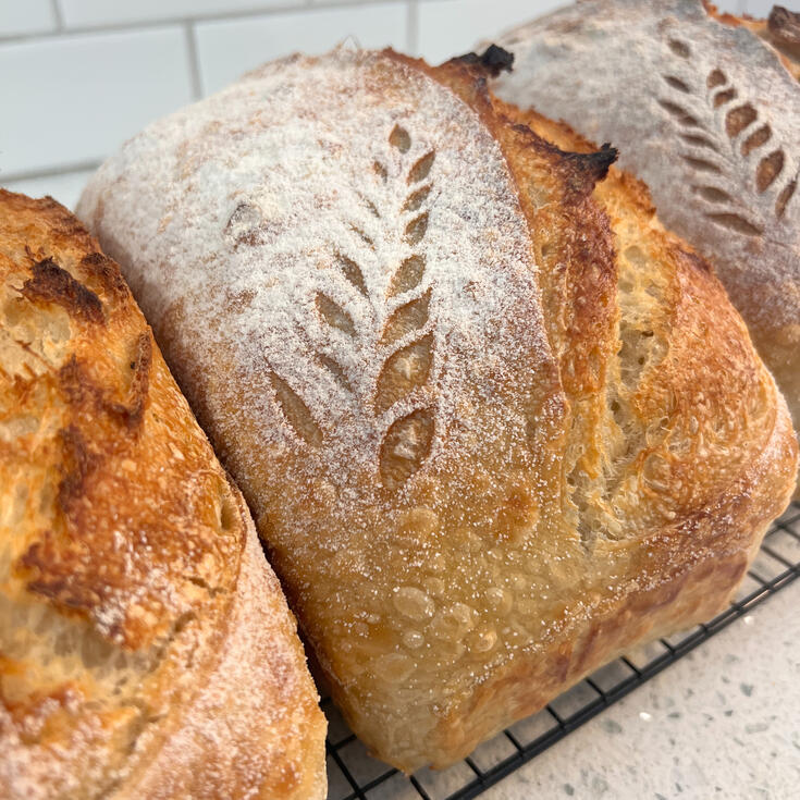 All of my sourdough products contain 3-4 ingredients, NO artificial yeast or preservatives, and are fermented for 12+ hours at ambient temperature allowing for easy digestion* and deep flavor development.